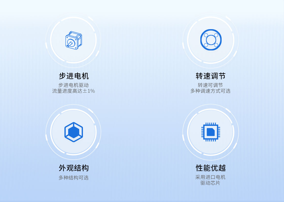 1.步進電機驅動,流量精度高達±1%