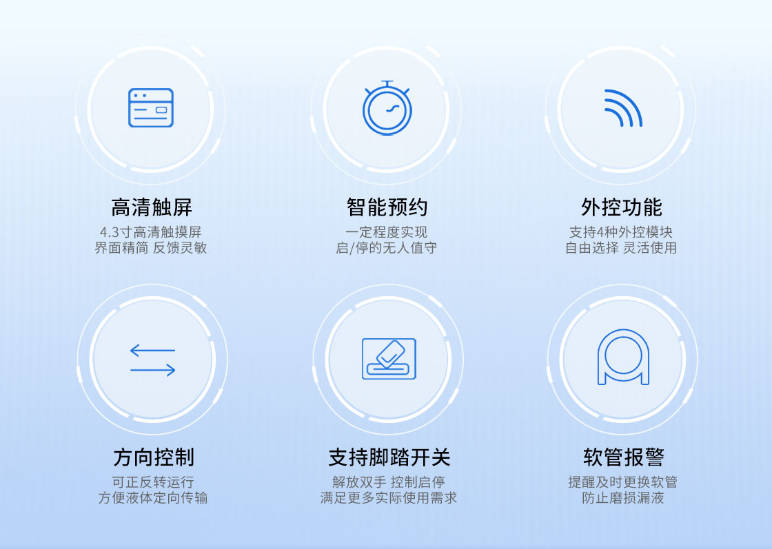 ◆軟管報警,提醒及時更換軟管,防止磨損漏液