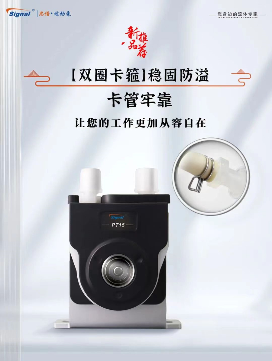 蠕動泵G-2J+PT15具備雙圈卡箍,這種設(shè)計能夠更牢固地卡住軟管,可以有效避免漏液,軟管的安全性得到了充分保障。