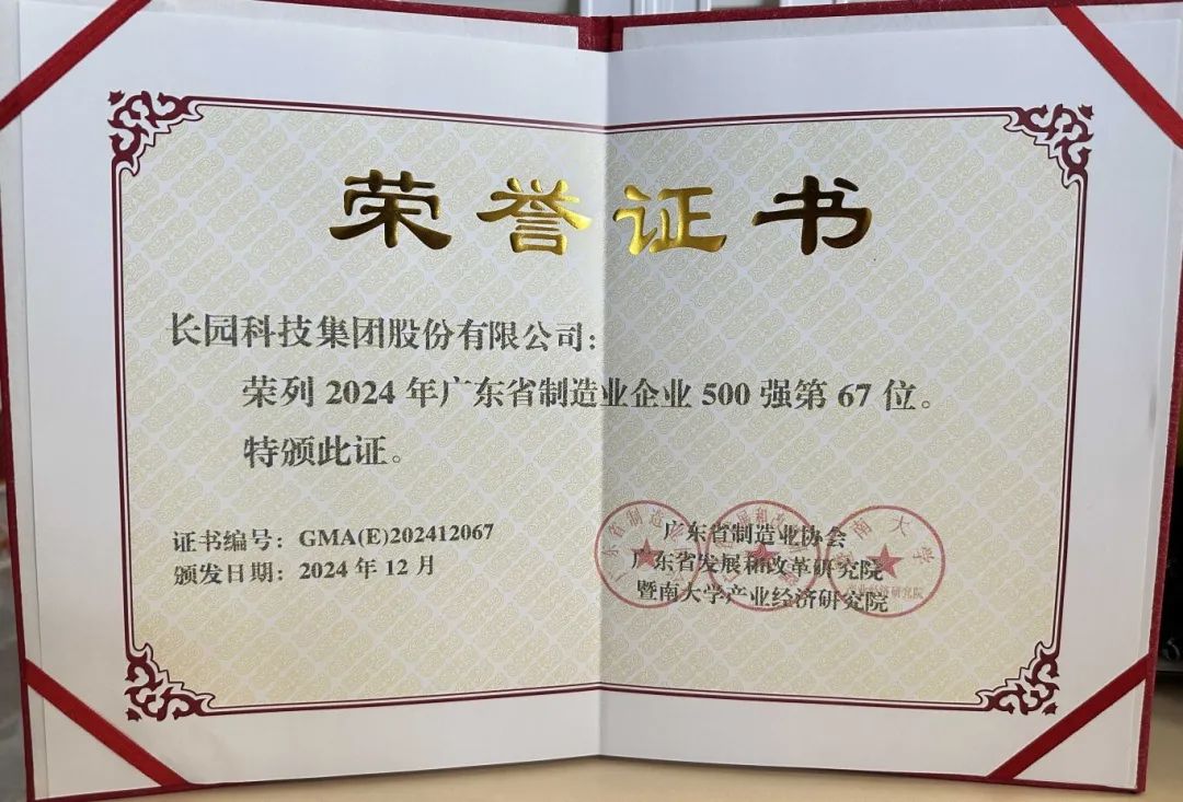 長園科技集團入選“2024年廣東制造業500強榜單”